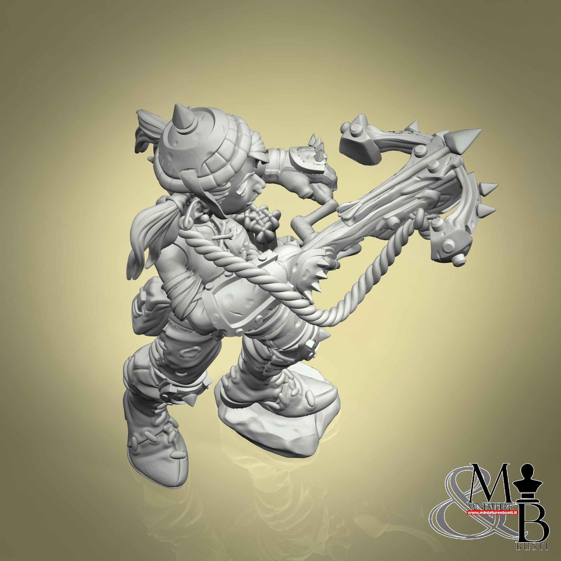 Questa è una MINIATURA. Le miniatura sono modelli pensati per i giochi di ruolo, ad esempio dungeons & Dragons, che poi ridimensioniamo in alto o in basso per le differenti scale. Di solito sono originariamente scolpiti per sistemi a 32mm (dove un uomo standard è alto 32mm dai piedi alla testa). Le proporzioni sono pensate tenendo in considerazione che verranno maneggiate spesso, quindi dettagli come spade e scudi sono particolarmente spessi. La miniatura viene venduta come appare nell'immagine, e dato che alcuni autori non aggiungono una base, se questa è assente nell'immagine significa che non verrà fornita con la miniatura.